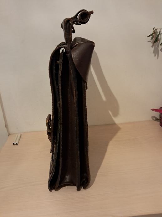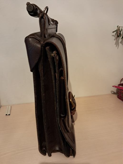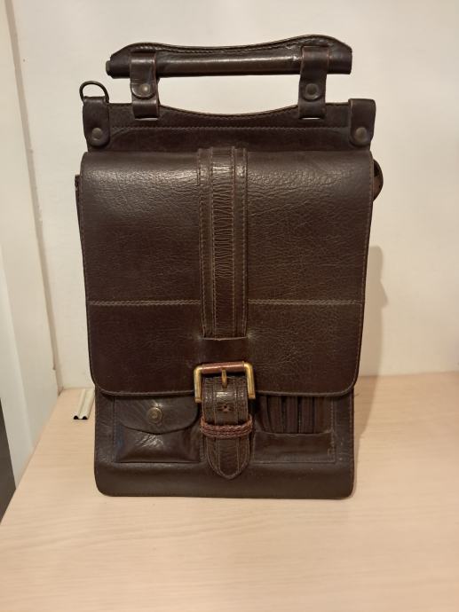 Muška prava koža torba ispravna neoštećena može se nositi za ručke ili preko ramena dimenzije š 23cm v32cm 8cm