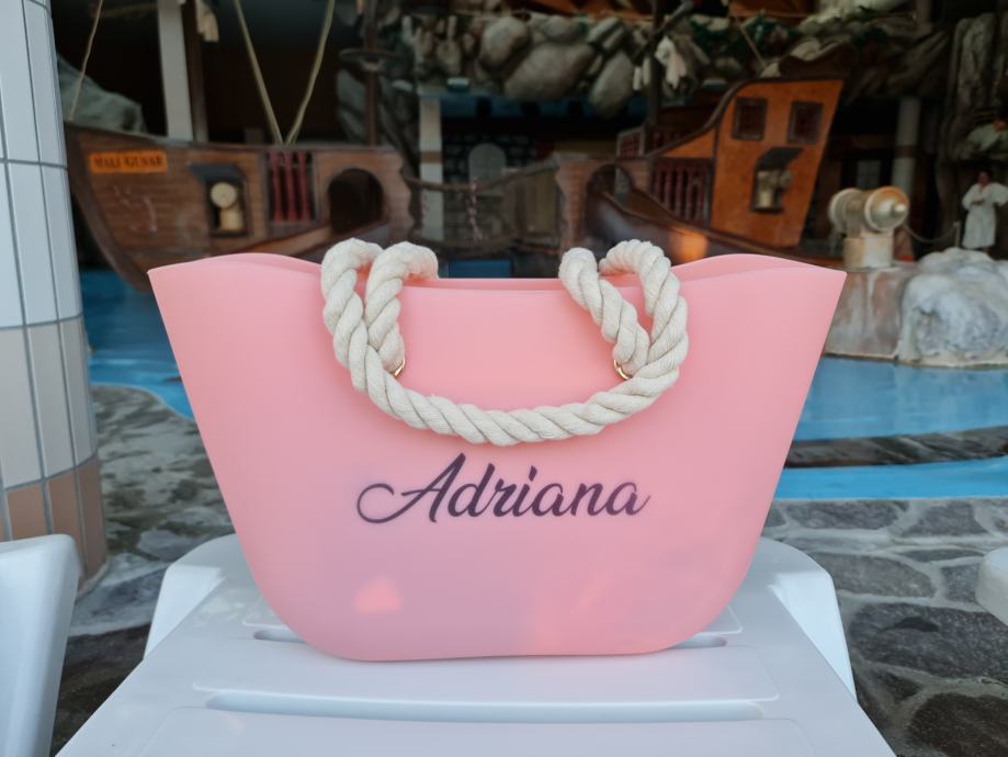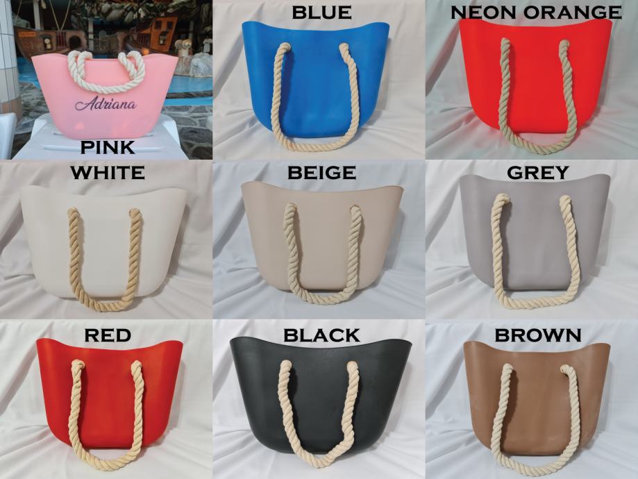 Izuzetno praktična i periva, silikonska torba za plažu s patent zatvaračem i elegantnim ručkama koje se lako montiraju i skidaju.