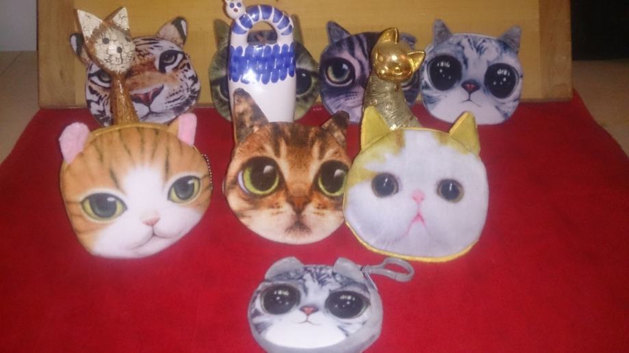 Plišani novčanici za kovanice s motivima mace (zalutala i jedna velika prava maca - tigar)