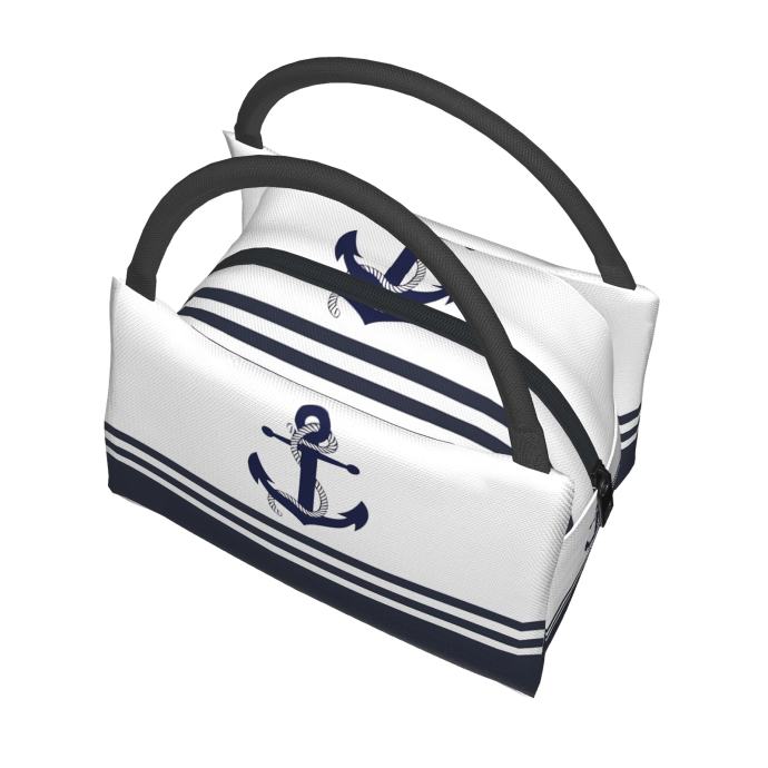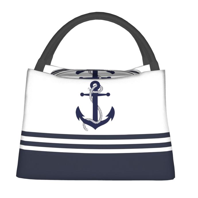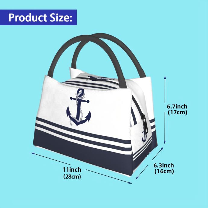 1 Jednostavna plava torba za hlađenje s uzorkom sidra, prijenosna torba za višekratnu upotrebu, izolirana torba neophodna za kampiranje i plažu, pogodna za dom, ured i vanjsku upotrebu, blagdanski poklon, rođendanski poklon, poklon 27,94 x 16,0 x 17,02 cm