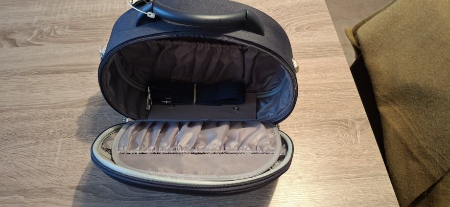 Prodajem putni neseser, visina je 29 cm a sirina 33, tvrde je konstrukcije.