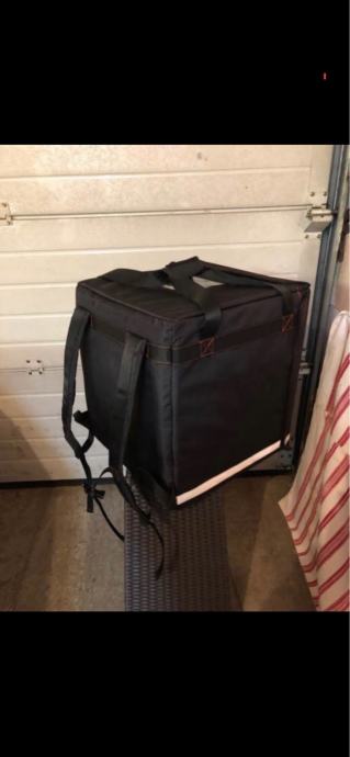 Prodajem ruksak za dostavu hrane, nov s etiketom. Radi se o prostranoj, čvrstoj termotasci u obliku kocke s ruksak naramenicama, izrađenoj od čvrstog najlonskog materijala. Opremljena je patentnim zatvaračima i reflektirajućim trakom sa strane. Unutrašnjost je toplinski izolirana, što omogućuje održavanje temperature hrane tijekom transporta. Ruksak dolazi u crvenoj i crnoj boji.