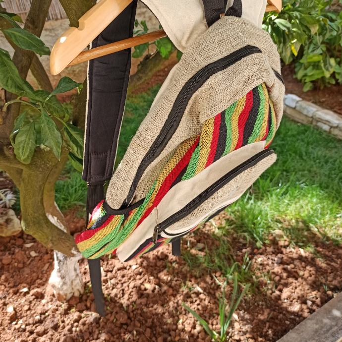 Rucno radeni ruksak sa Himalaye iz regije Nepal, napravljen je od prirodnih vlakna hempa (industrijske konoplje) i tkanine.
