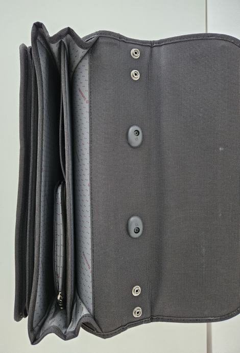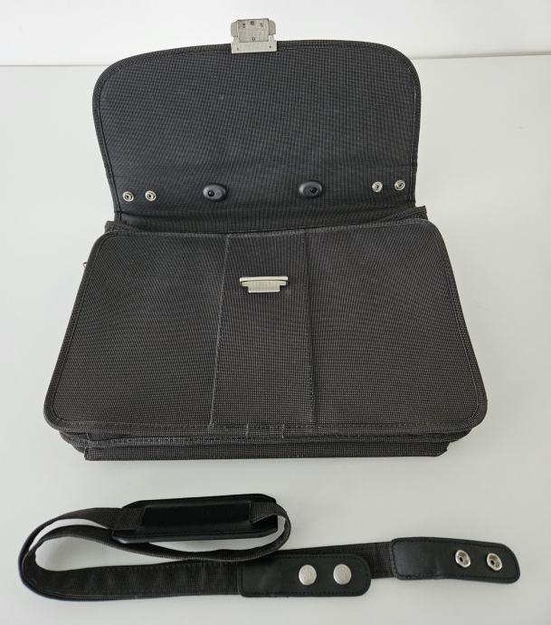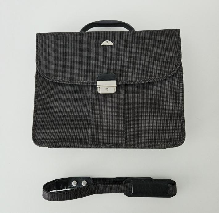 Prodajem Samsonite poslovnu torbu u sivoj boji od sintetskog materijala s mat kromiranim kopčama. Torba je malo upotrebljavana i u vrlo dobrom je stanju. Približne dimenzije su 42 x 7 x 42 cm (ŠxDxV) i dubina torbe ovisi koliko je napunjena. Torba ima i dodatni remen za nošenje preko ramena.