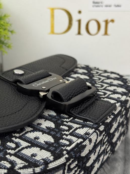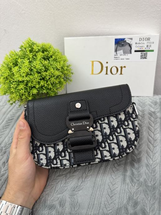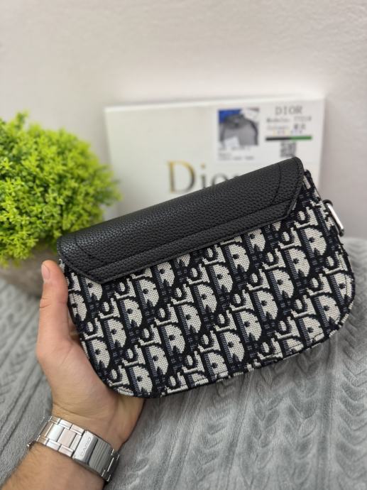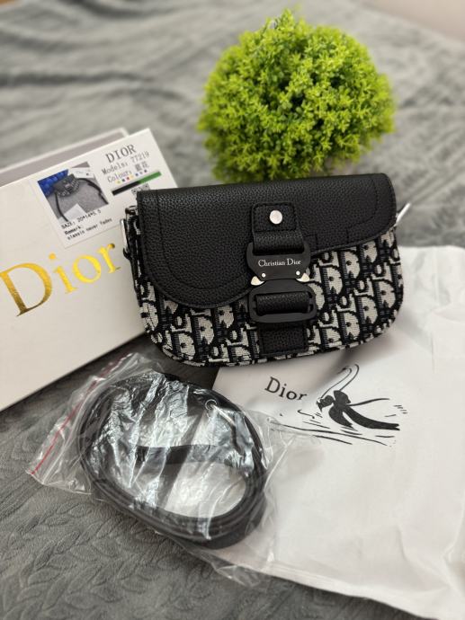 Elegantna Christian Dior torbica, crno-sive boje s prepoznatljivim Dior uzorkom. Izrađena od kvalitetnog materijala, s metalnim detaljima i podesivim remenom koji dolazi u paketu. Torbica je nova, nikad nošena, u kompletu s vrećicom i kutijom. Savršena za svakodnevno nošenje ili posebne prilike.