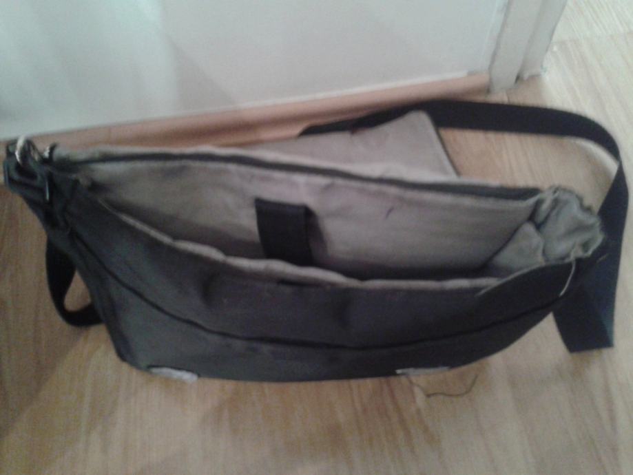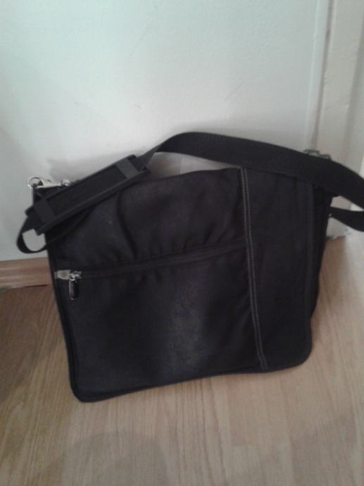 Torba za laptop ili spise, prakticna, rabljena, crna, vidljivi tragovi koristenja i manja ostecenja u unutrasnjosti
