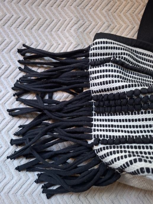 Prodajem kratko nošenu torbu etno uzorka crno/bijele boje koja mi je služila za para dana na moru. Ima manji pretinac unutar torbe za sitne stvarčice. Torba je bez oštećenja i fleka , oprana i mirišljava. Može se koristiti i za sakodnevne odlaske u grad, u nabavku, šetnju..... Dimenzije torbe: dužina 32 cm, širina na dnu 13 cm, visina 22 cm, širina na vrhu torbe je 43 cm.