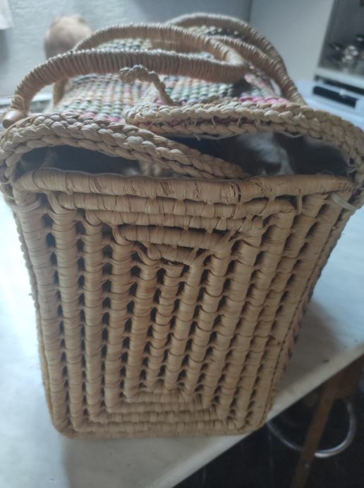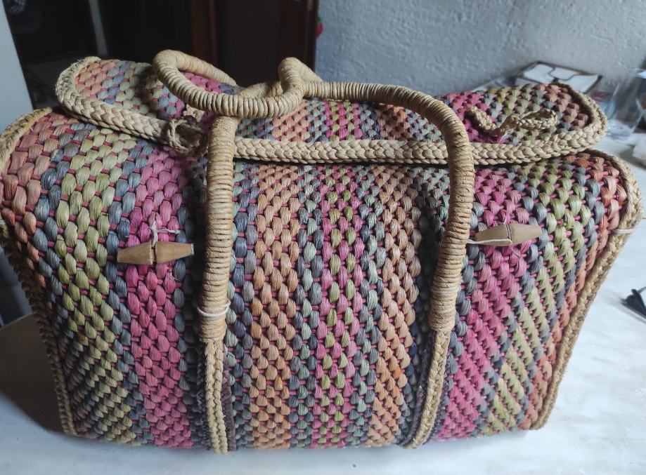 Prodajem Vintage torbu za plažu od pletenog lika / rafije u pastelnim bojama, 45x25x28 cm.podstavljena iznutra