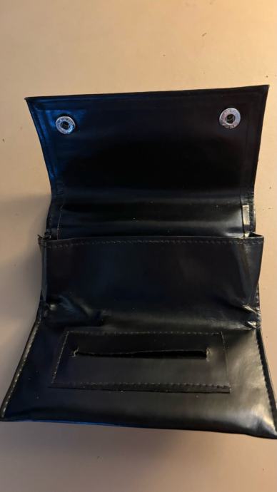 Prodajem torbicu za duhan u crnoj boji, izrađenu od umjetne kože. Torbica ima praktičan dizajn s metalnim kopčama za zatvaranje i dodatnim pretincima za pohranu papirića, filtera i upaljača. Unutrašnjost je opremljena s nekoliko odjeljaka koji omogućuju pregledno odlaganje svih potrebnih stvari za motanje. Torbica se zatvara na dvije metalne kopče, a ima i dodatni džep na patent zatvarač za sitne predmete. Kompaktna je i lako se nosi sa sobom.