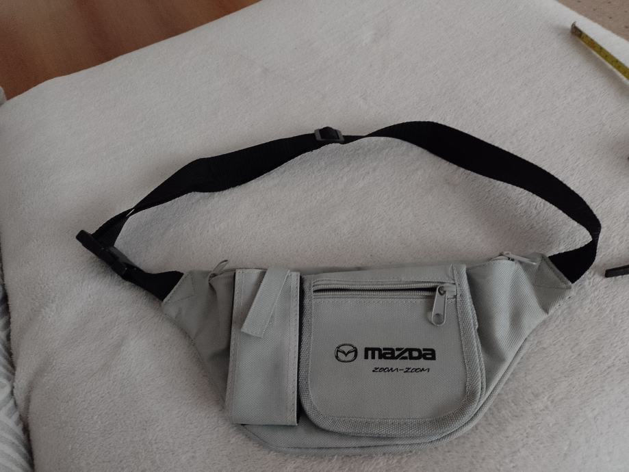 Super očuvana okopojasna torbica "Mazda". 2 veća pretinca i ova dva manja s prednje strane. Te iznutra za kovanice i kartice.