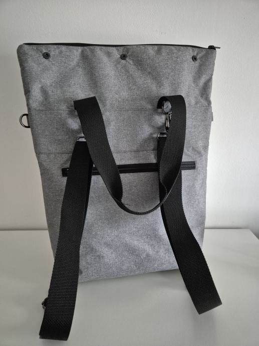 Veliki, čvrsti platneni ruksak/torba, 3u1. Ima podesive remene i može se nositi u ruci, na leđima kao ruksak ili na ramenu. Ručni rad, izrađen u socijalnoj zadruzi Humana nova u Čakovcu. Potpuno novi, nekorišten. Na poklon platnena torba isto Humana Nova, nekorištena, s etiketom.