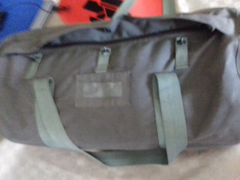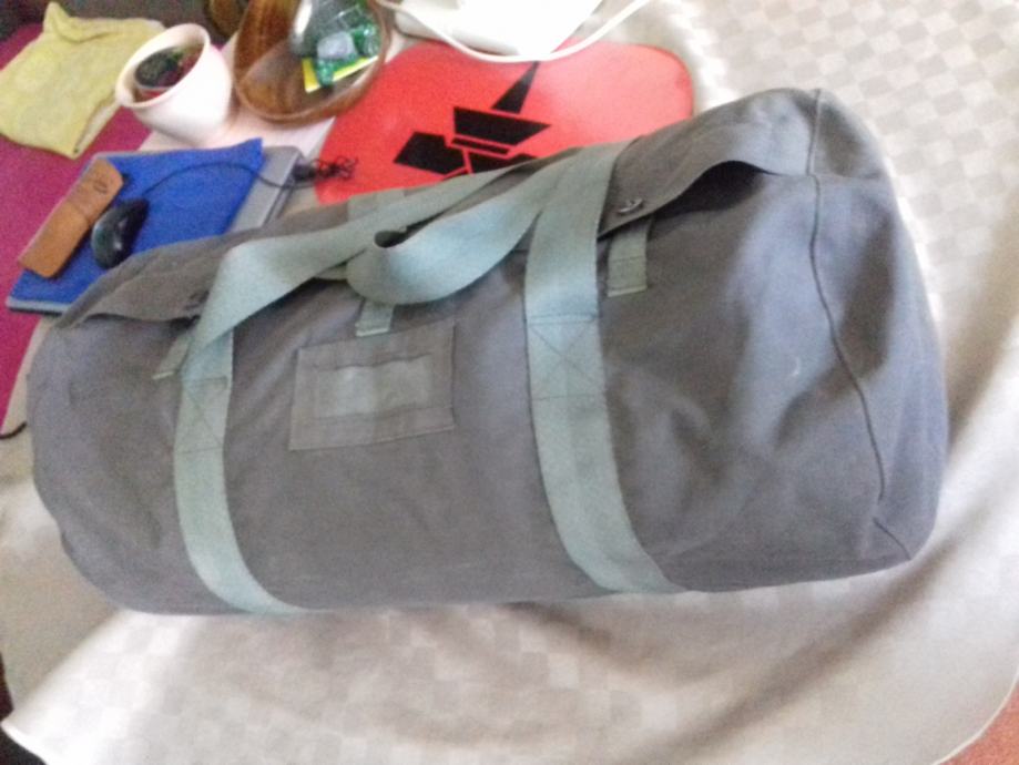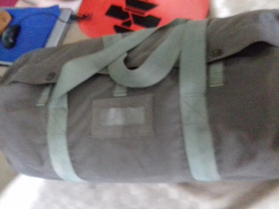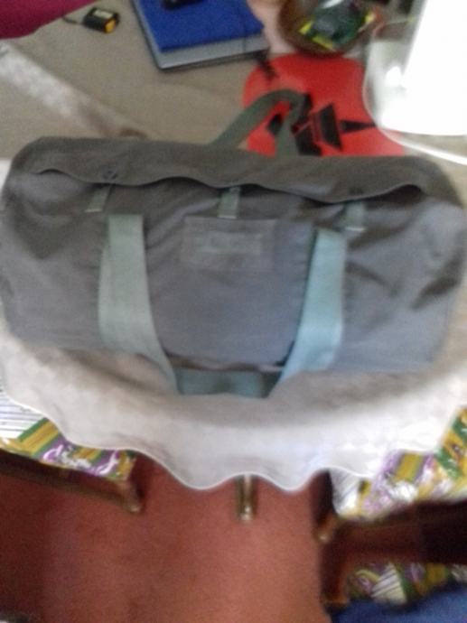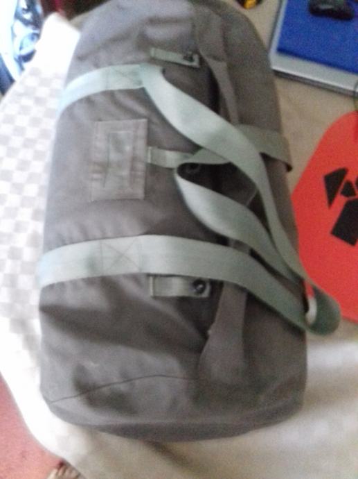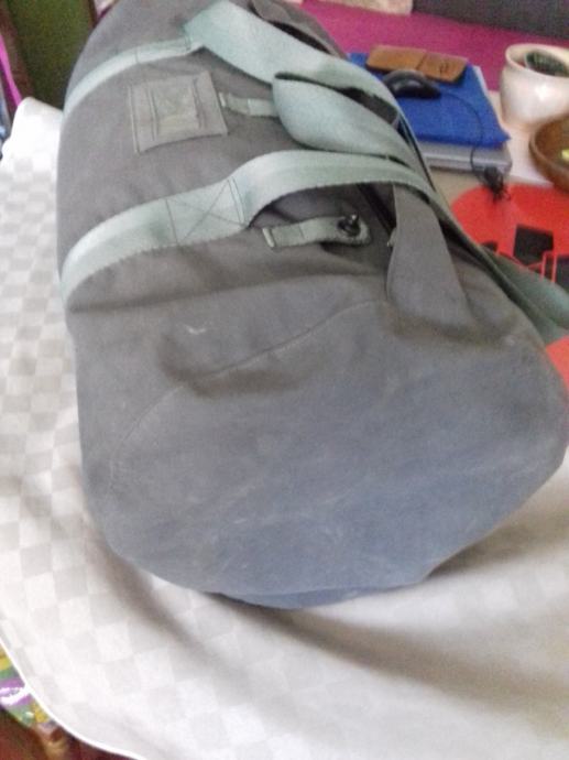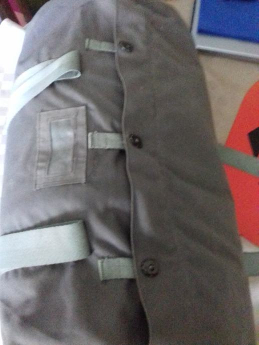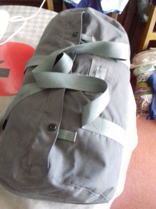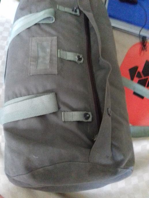 VOJNA TRANSPORTNA TORBA D=60CM ,napunjena torba je u obliku valjka,dužine 60cm, promjer fi=30cm , jaki ciferšlus + metalni gumbi ,koriste lovci , ribolovci, sportaši, putnici , nekad koristila (jna)VIDI SLIKE!
