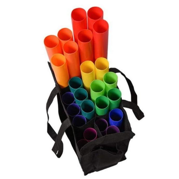 Set melodičnih cijevi u setu se nalazi 25 cijevi. Set dolazi s praktičnom torbom za prijenos cijevi.