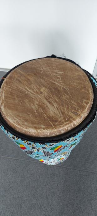 Afrička djemba,original donešena iz Obale Bjelokosti,novi nekorišten,14 incha tj.promjer 35 cm.vis.62 cm.debljina 2.5 do 3 cm.opasno dobar zvuk neusporediv sa europskim zvukovima djembe.Dolazi sa original torbom izrađena po mjeri bubnja.Drvo mahagonij.