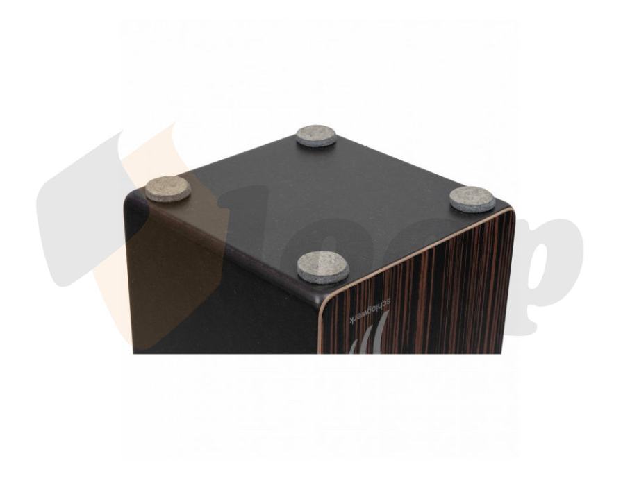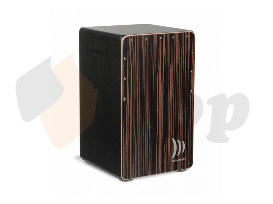 SCHLAGWERK CP432 DELUXE MAKASSAR cajon: ova crna ljepotica ima sve! Lijepa Macassar površina proizvodi iznenađujuće snažan bas, a njegova posebna rezonantna kutija izrađena od SPL (Sonic Projection Lignum) predstavlja novu dimenziju u konstrukciji cajona. Izuzetno bogat zvuk snarea proizveden od strane 84 spirale definitivno osigurava njegovu poziciju unutar 2inOne serije. "Deluxe" – za oči i uši!