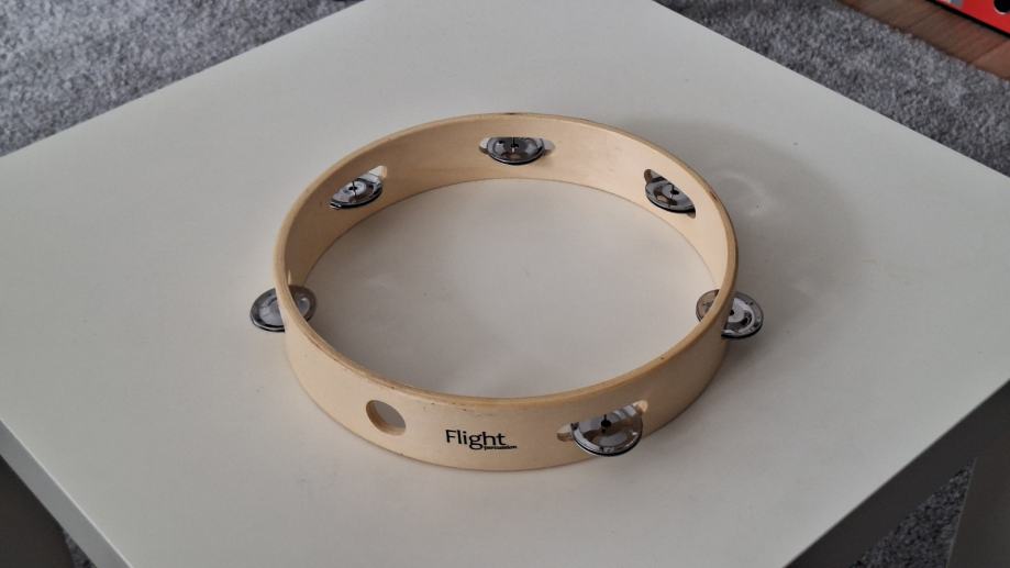 Ispravan, nekorišten tamburin (def). Jedan red činela.