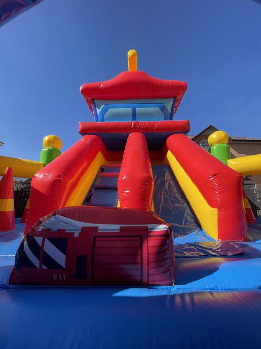 Opis proizvoda: veliki prostor za skakanje sa toboganom i preradama