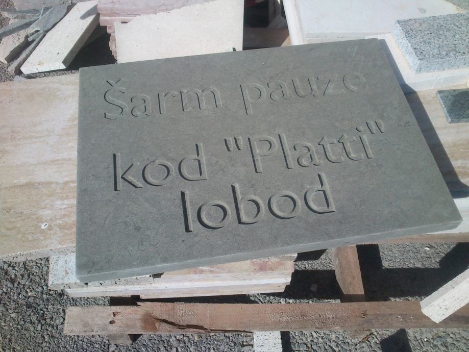 Vršimo graviranje slova, bušenje rupa, rezanje krivulja u granitu i maramoru, rezanje rupa u kuhinjskim pločama.... na CNC stroju