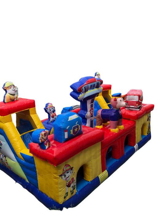 Opis proizvoda: 2 velika tobogana, prostor za skakanje i penjanje, pregrade, stijena za penjanje.