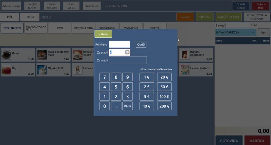 U cijenu uključeno: računalo s ekranom na dodir, jedan pos printer, ladica za novac te pos program za izdavanje računa.
