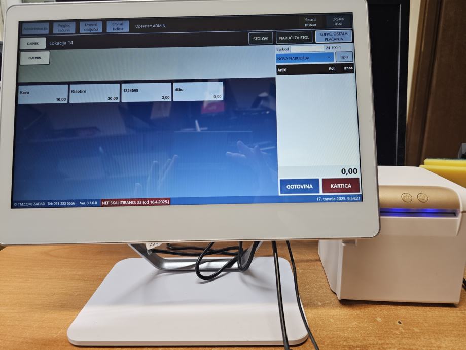 Trgovine sa većim brojem računa 40 eura računalo na dodir, pos printer, ladica, barcode čitač, pos program.