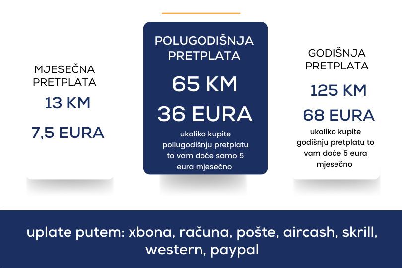 Sve uplate je moguće vršiti putem: A-bona, aircash ili putem paypala.