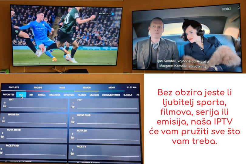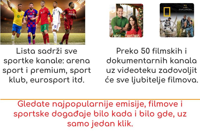 Sa IPTV televizijom, možete pristupiti širokom izboru domaćih i međunarodnih kanala, uključujući sportske, zabavne, vijesti, dječje, dokumentarne i mnoge druge.