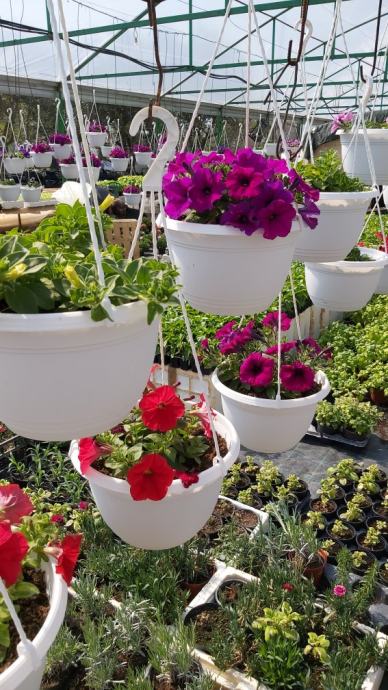Surfinije/potunije, ostale su samo stojeće potunije. Grmolik izgled u malim teglama za presađivanje i u velikim visećim bijelim teglama