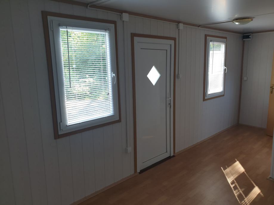 dimenzije: 6,00x2,40m, izolacija kontejnera 10cm mineralna vuna, PVC stolarija šestkomorna, stambeno uredski interijer zidna obloga bijeli jasen, laminat hrast klik, izvedba prema dobivenom nacrtu.