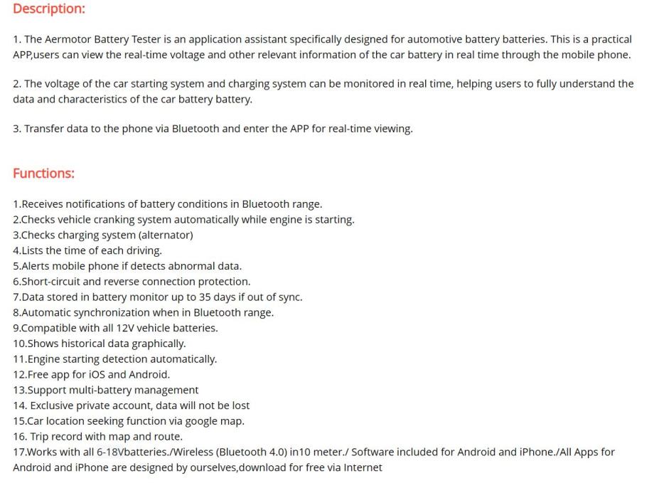 Auto BM300 12v bežični beskontaktni tester analizator stanja akumulatora Bluetooth 4.0