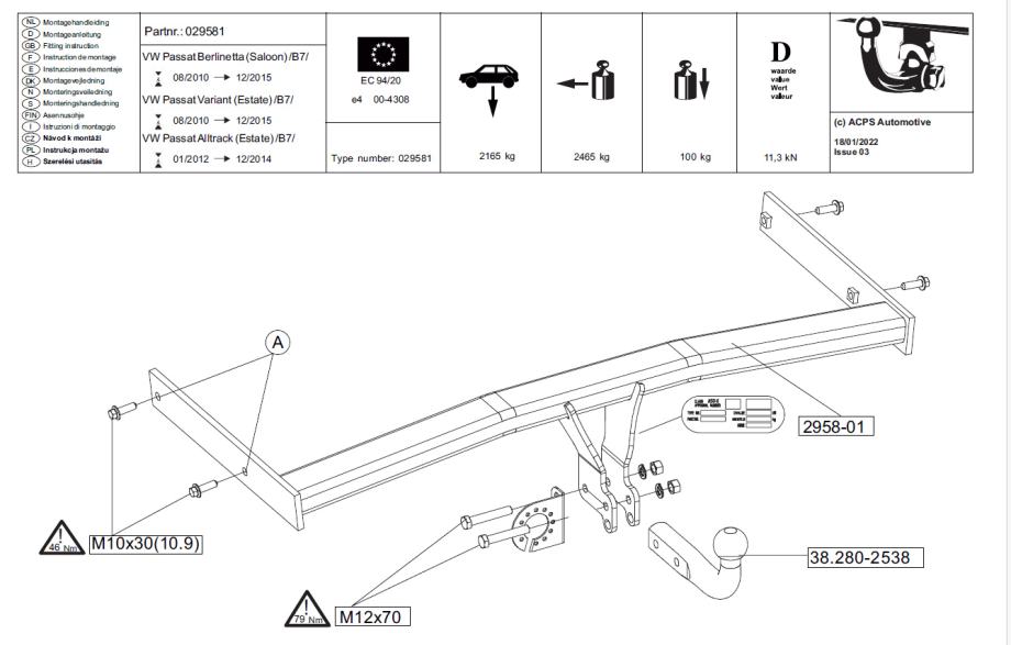 Maksimalno opterećenje osovine kuke za vuču R 2465.0 kg