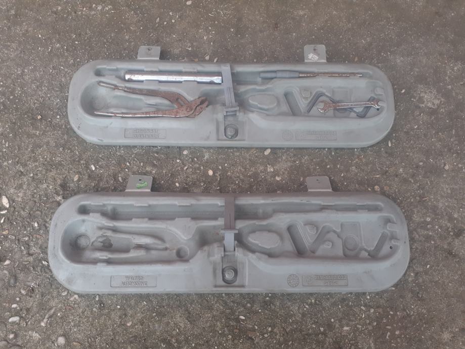 Prodajem dva pretinca za alat, za BMW e36. Bilo su u limuzini (mislim da paše i na ostale modele) iz 1996. i 1997. godine i u vrlo dobrom su stanju, kopče bez oštećenja. Jedan se prodaje potpuno prazan, a drugi sa dijelom alata, sve točno kao na slikama. Kataloški brojevi i svi drugi podaci vidljivi su na slikama. Original BMW.