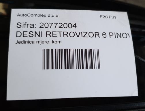 BMW F30 F31 DESNI RETROVIZOR 6 PINOVA 20772004