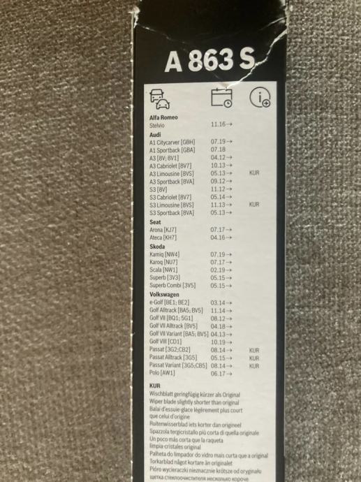 Prodajem nove brisače (zapakirane) Bosch AeroTwin A 863 S pogodna za većinu vozila iz VW koncerna.