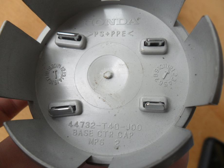Honda čepovi za alu felge, originalni, vanjski promjer 58mm, unutarnji 56mm, stanje novo.