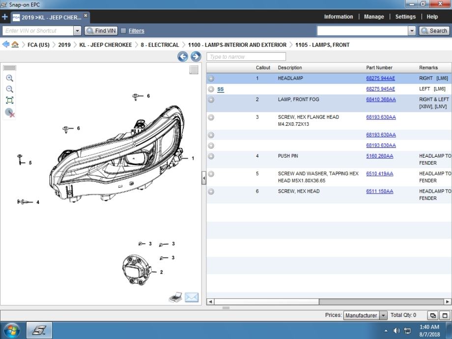 Chrysler FCA EPC5 2018 Elektronički katalog rezervnih dijelova