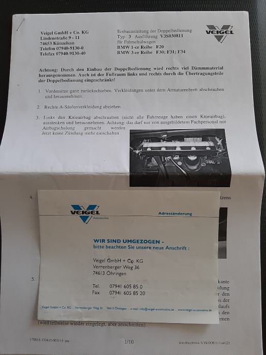 Bmw f20, f 30 duple komande za auto skolu veigel sa atestom prodajem za 250EUR.