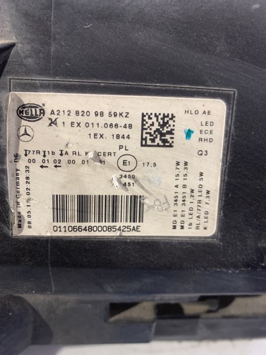 Odgovara za modele: E KLASA (W212) > 13-16, A2128209859, 2128209859, A 212 820 98 59, MARIN:2909***CIJENE SU INFORMATIVNOG KARAKTERA***ZA SVE INFORMACIJE NAZOVITE TOKOM RADNOG VREMENA : PON - PET : 09-18h SUB : 09-14hDijelovi za SVA MERCEDES VOZILA !!!!️W202 W203 W204 W205 W207 W208 W209 W210 W211 W212 W213 W215 W216 W218 W219 W220 W221 W222 W168 W163 W164 W169 W245 W246 W176 W171 W172 W166LIMARIJA – (amortizer zadnje haube, pvc zaštita zadnja, lajsna vrata, pvc zaštita prednja, zaštita ispod motora, pvc oplata blatobrana, poklopac motora, brava zadnje haube, hauba prednja, hauba stražnja, vrata prednja lijeva, vrata prednja desna, vrata stražnja lijeva, vrata stražnja desna, branik prednji, branik stražnji, vezni lim, far, lampa zadnja vanjska, lampa zadnja unutarnja, žmigavac, retrovizor, vezni lim stražnji, traverza, nosač branika prednji, nosač branika stražnji, prag, rubnjak, mulda, blatobran, stranica zadnja, krov, pvc zaštita notora, pvc obloga blatobrana, kvaka vanjska, brava prednje haube, brava stražnje haube, guma oko vrata, vezni lim stražnji)MEHANIKA – (sajla gasa, sajla ručne kočnice, sajla mjenjača, remenica radilice, španer kanalnog remena, kočiona kliješta, glavčina prednja, glavčina stražnja, vilica, vilica gornja, vilica donja, vilica ravna, vilica s, naba, lager, most prednji, most stražnji, spona, krajnik, letva volana, amortizer, balans štanga, opruga, nosač motora, skija ispod motora, turbina, usisna grana, servo pumpa, lajtung serva, hladnjak zraka, cijevi hladnjaka zraka, felge čelične, felge aluminijske, bregasta osovina, klip, klipnjača, blok motora, glava motora, klackalica, sajle mjenjača, šalthebla, sajla ručne kočnice, kučište filtera zraka, kučište filtera goriva, vakum pumpa, lager, naba, dizna, egr ventil, šarafi kotača)ELEKTRIKA – (otpornik grijanja, električni uložak brave, bobina, anlaser, alternator, relej, centrala zračnih jastuka, kompijuter motora, brava, podizač stakla, prekidač podizača stakla, bobina, razvodnik paljenja, transformator fara, kompijuter letve volana, električna letva volana, električna servo pumpa, senzor radilice, senzor bregaste, senzor ABS-a, agr ventil, vakum ventil, klapna gasa, pumpa goriva, dizne, rampa za dizne, mjerač protoka zraka, senzor zračnog jastuka, prekidači svijetla, prekidači brisača, prekidač, kutija osigurača, radio uređaj, cd uređaj, displej, kilometar sat, instalacija, priključak, dizna)MOTOR – (goli motor bez dijelova opisanih u grupi mehanika i elektrika)UNUTARNJA OPREMA – (zračni jastuk, sigurnosni pojas, zračna zavjesa, garnitura zračnih jastuka, cd izmjenjivać,kopče sigurnosnog pojasa, maska cd uređaja, tapecirung vrata, krovni tapecirung, sjedalo, armatura, središnja konzola, sjenilo za sunce, ručica mjenjača, tepih, plastke razne, pepeljara, unutarnji retrovizor)SUSTAV HLAĐENJA I KLIMA – (kučište ventilacije, ventilator klime, ventilator hladnjaka vode, hladnjak klime, hladnjak vode, lajtung klime, crijevo vode, isparivać, presostat, hladnjak grijanja, kompresor klime, kompijuter klime, relej klime)STAKLA I BRISAČI – (staklo prednje, staklo stražnje, bočno staklo klizno, bočno staklo fiksno, škare brisača, motor brisača, ruka brisača prednja, metlica brisača, ruka brisača stražnja)POGONSKI SUSTAV – (lager kotača, vijci kotača, felga čelićna, felga aluminijska, felge set, mjenjač, poluosovina lijeva, poluosovina desna, homokinetički zglob, kuplung set, zamašnjak, lamela, druk lager, korpa)ISPUŠNI SUSTAV – (fleksibilno crijevo, srednji lonac, zadnji lonac, ispušna grana, katalizator, dpf filter, lambda sonda, senzor temperature dpf