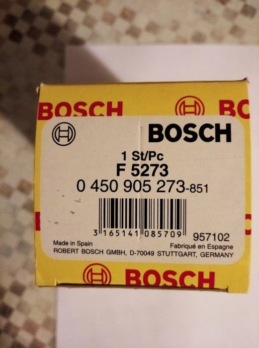 PRODAJEM POTPUNO NOVI FILTER GORIVA " BOSCH " F5273, 2 KOMADA KOJI ODGOVARA ZA MNOGE MARKE VOZILA ( ALFA ROMEO, AUDI, DAEWO, FIAT, LANCIA, OPEL, SEAT, SKODA TE VW ). MOLIM POGLEDAJTE KATALOG BOSCH - A !