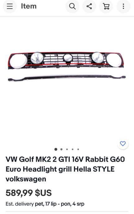 Maska original Golf 2 GTi Hella sa hella original farovima i original crvenom crtom jedna donja kopča pukla. Ostale ok. Nemojte mi slati poruke tipa "koja je "zadnja" je su te maske vani po 500 dolara. Hvala.
