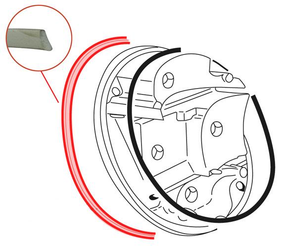 buba, karmann ghia svih godina (stariji modeli imaju 2 brtve sa svake strane 2 različite oblike do 1967, nakon 1967. samo jedan komad sa svake strane)
