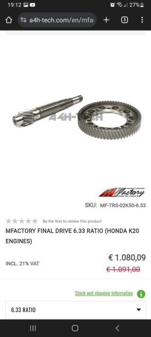 k20 6.33 najkraci prenos za brdo 1200€