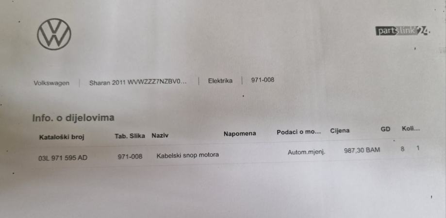 Instalacija motora motorna 2.0 TDI CFF DSG Sharan 7N 03L971595AD 2010-2014 god