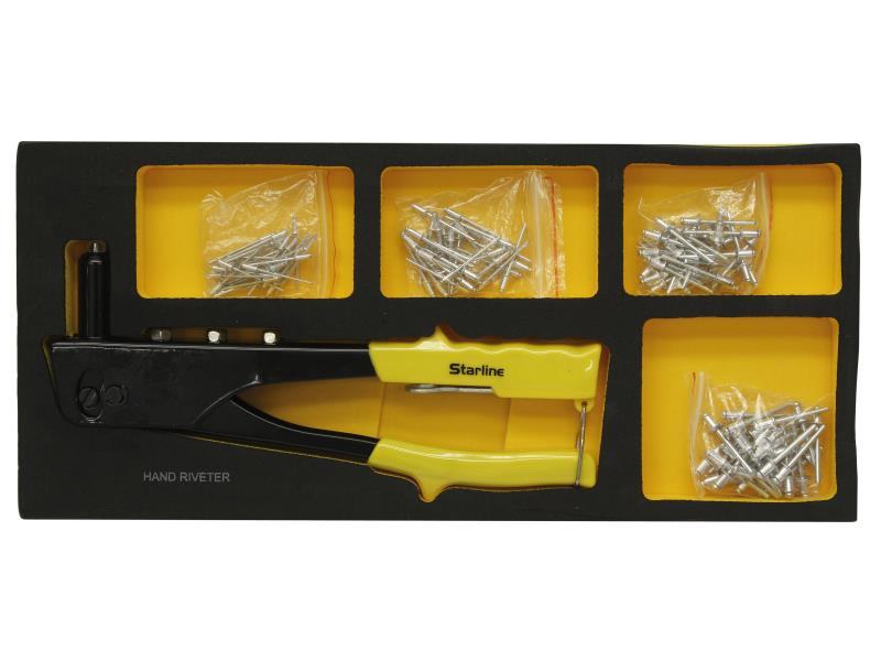 Kliješta za zakovice za set s najčešćim aluminijskim zakovicama.