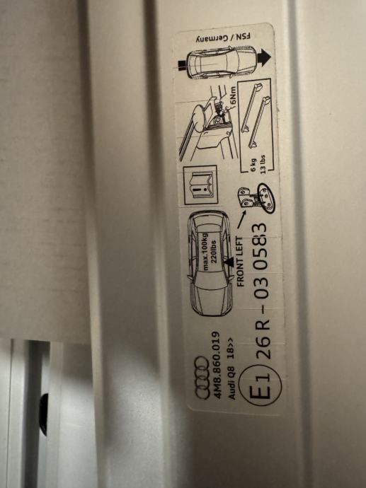 Prodajem nove nekorištene poprečne krovne nosače za Audi Q8 u original pakiranju.
