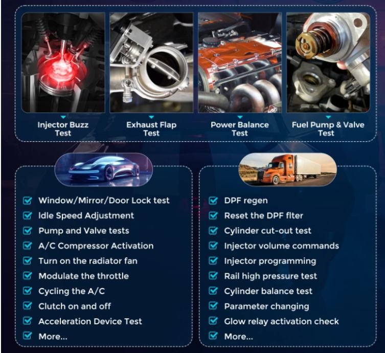 Pokriva vozila: Cummins, Bosch, Weichai, Shangchai, Yuchai, Xichai, Chaochai, Yangchai, Quanchai i drugi softver za dijagnostiku motora, podržava kamione, autobuse, građevinske strojeve, poljoprivredne strojeve, prikolice, brodove i druge vrste softvera za vozila.