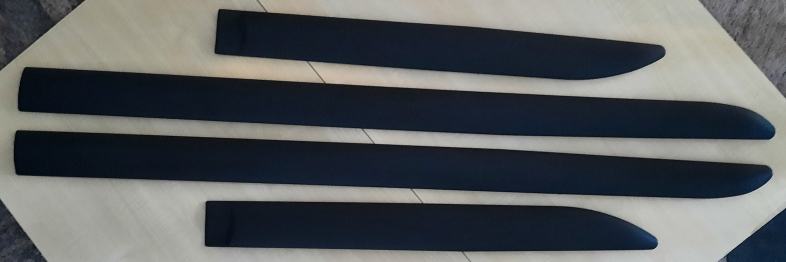 Izrađene su od PU (polyurethane) plastike, prilagođene modelu vozila, crne boje,