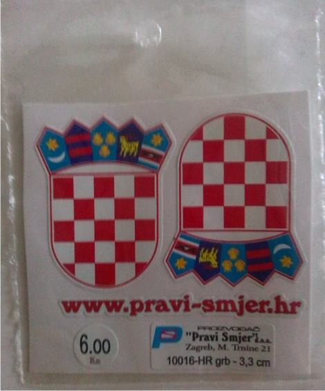 5,6 x 4,2 cm - Bijela PVC folija. Naljepnica pristaje na registracijsku tablicu