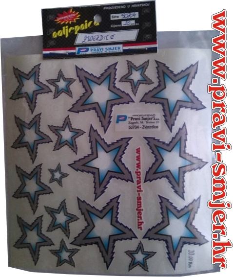 je 14x14 cm tiskanih na bijeloj samoljepljivoj PVC podlozi. Proizvedeno u Hrvatskoj, vlastita proizvodnja.