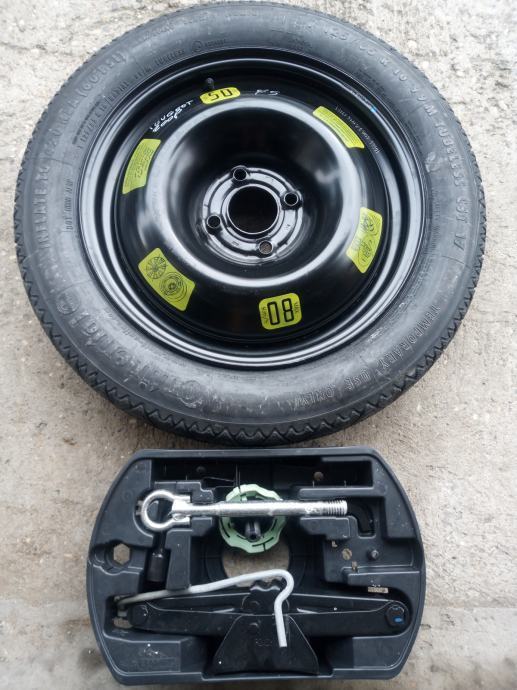 Rezervni kotač za Opel vozila novije generacije,16 cola,4× 108. Kotač i alat 130 eura. 091-568-7816